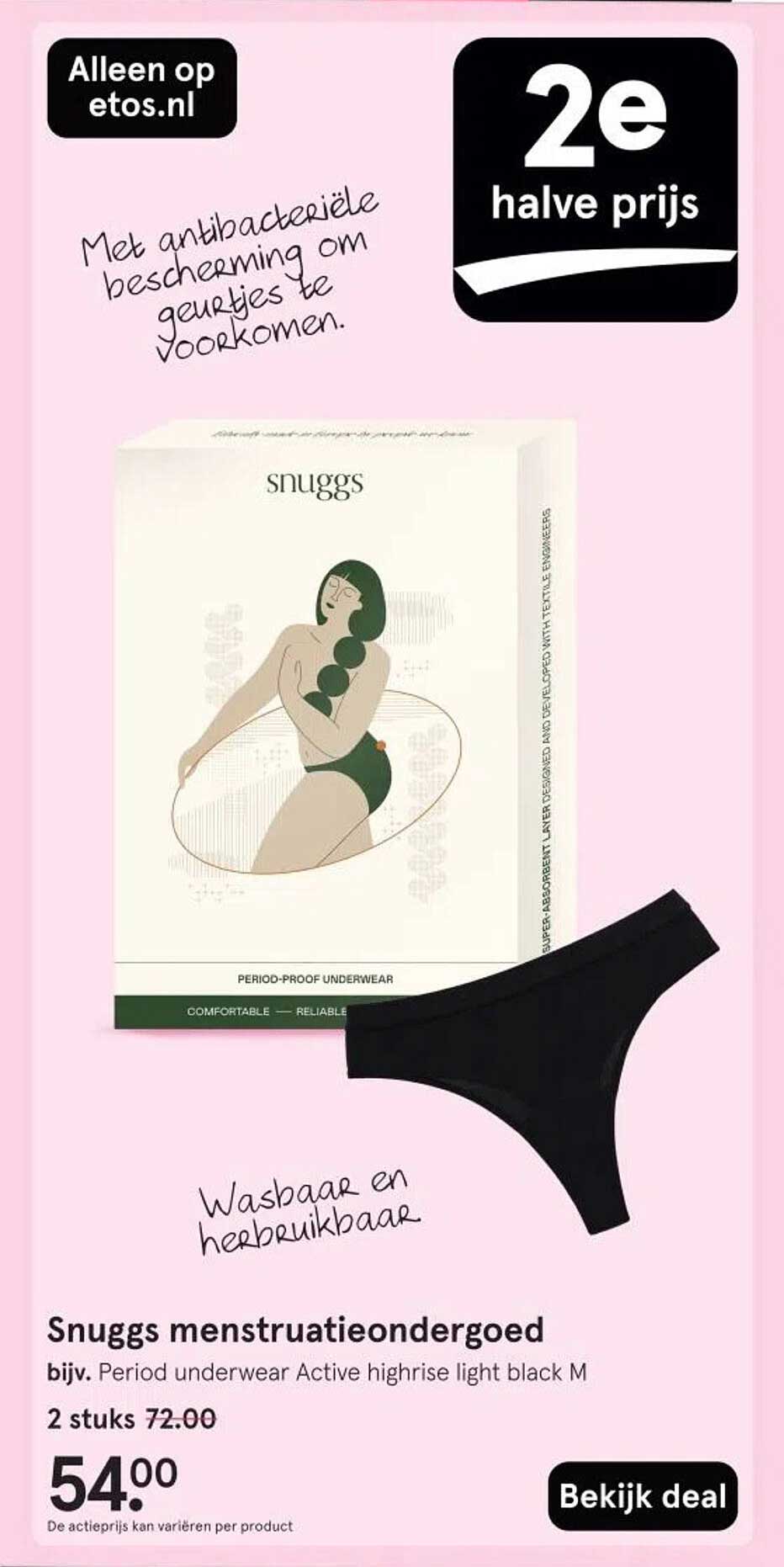 Bekijk nu de Snuggs menstruatieondergoed aanbieding in de Etos folder. Deze aanbieding is geldig van 04-08-2025 tot en met 10-08-2025.