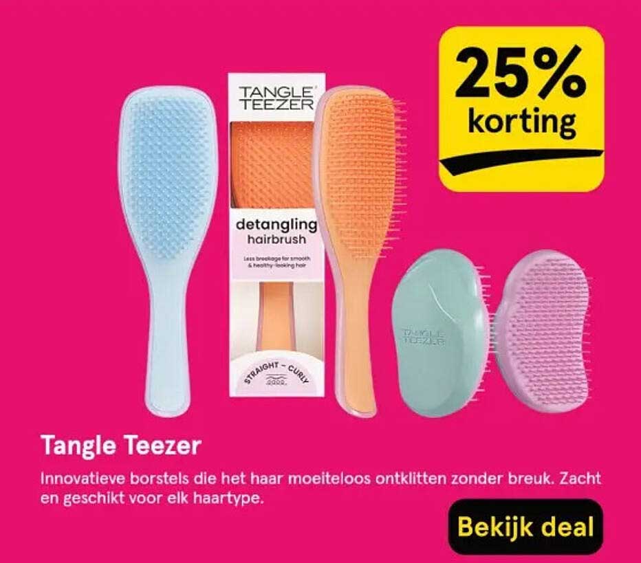 Ben je op zoek naar een effectieve manier om je haar te ontklitten zonder schade aan te richten? Dan is de Tangle Teezer detangling hairbrush precies wat je nodig hebt! Met maar liefst 25% korting tijdens deze aanbieding, haal je een kwalitatief hoogstaande borstel in huis die speciaal is ontworpen om je haar te verzorgen terwijl je het adopteert. Op deze pagina vind je meer informatie over deze fantastische deal!