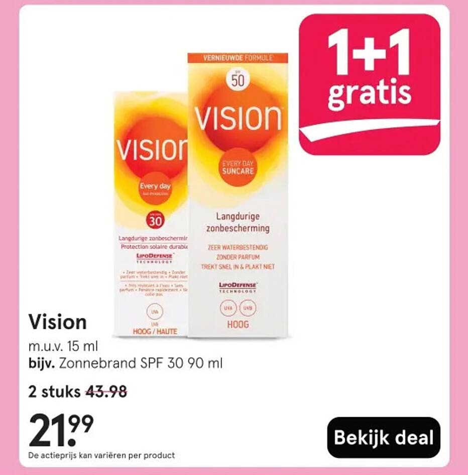 Bekijk nu de Vision 1+1 gratis aanbieding in de Etos folder. Deze aanbieding is geldig van 07-04-2025 tot en met 13-04-2025.