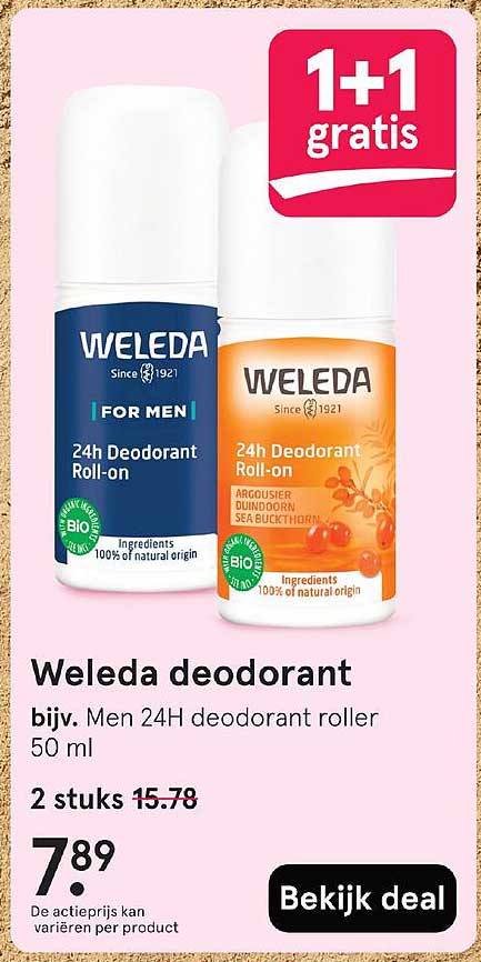 Normaal gesproken zou je voor twee stuks 15,78 euro betalen, maar met deze aanbieding ben je slechts 7,89 euro kwijt! Dat betekent een besparing van bijna 50%! Dit is de perfecte kans om kennis te maken met de producten van Weleda of om je favoriete deodorant voorraad weer aan te vullen.