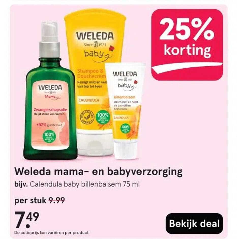 Bekijk de Weleda Mama- En Babyverzorging aanbieding bij Etos! Deze fantastische aanbieding is nu beschikbaar in de nieuwste Etos folder. Profiteer van deze kans en bespaar flink op je aankoop.
