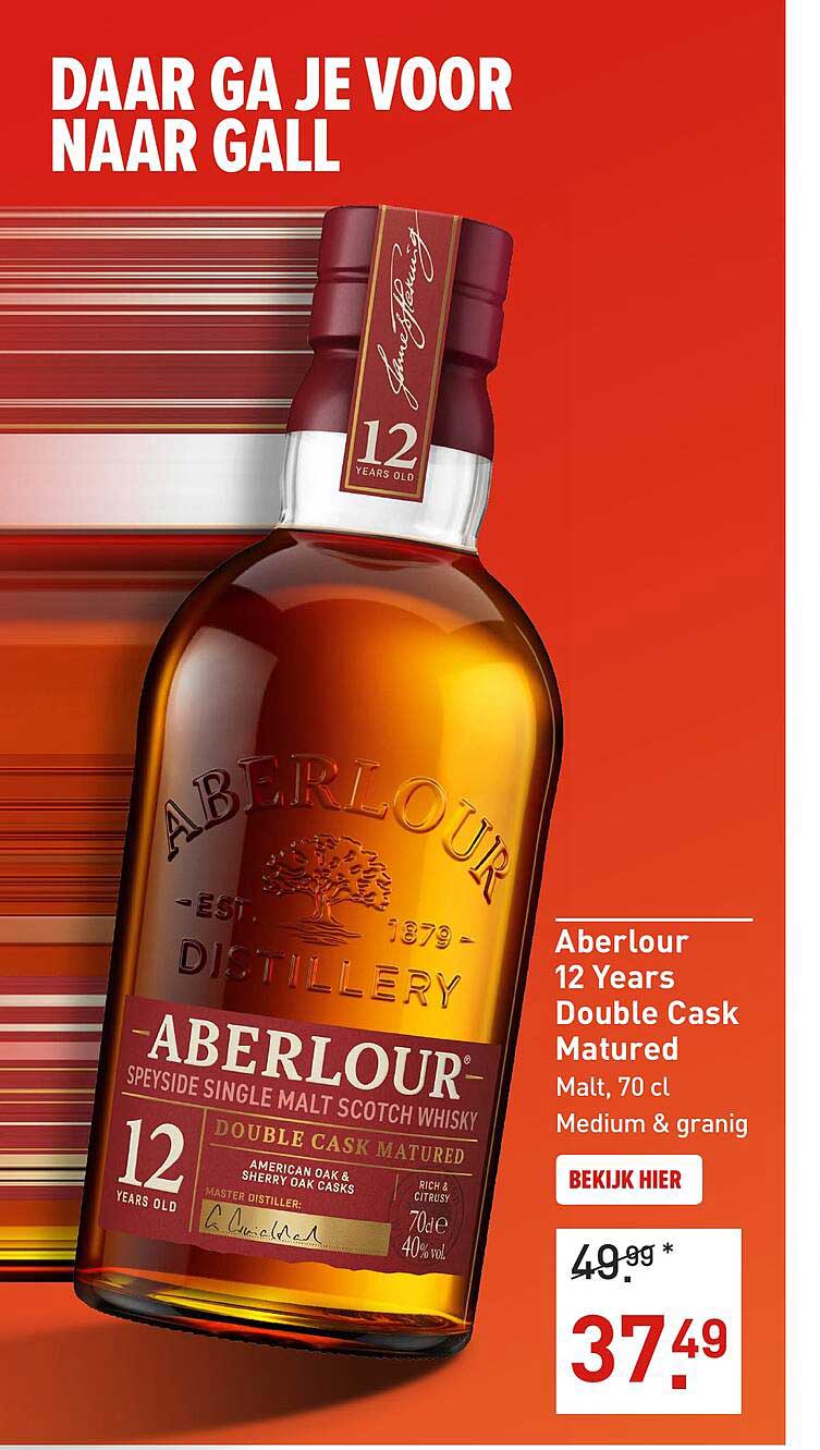 Bekijk nu de Aberlour 12 Years Double Cask Matured aanbieding in de Gall & Gall folder. Deze aanbieding is geldig van 07-07-2025 tot en met 13-07-2025.