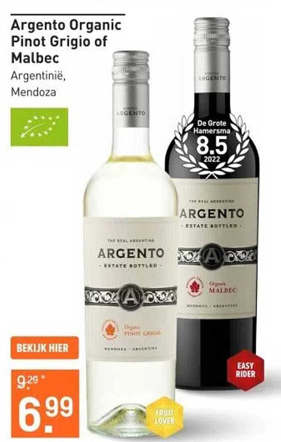 Bekijk nu de Argento Organic Pinot Grigio of Malbec aanbieding in de Gall & Gall folder. Deze aanbieding is geldig van 10-06-2025 tot en met 15-06-2025.