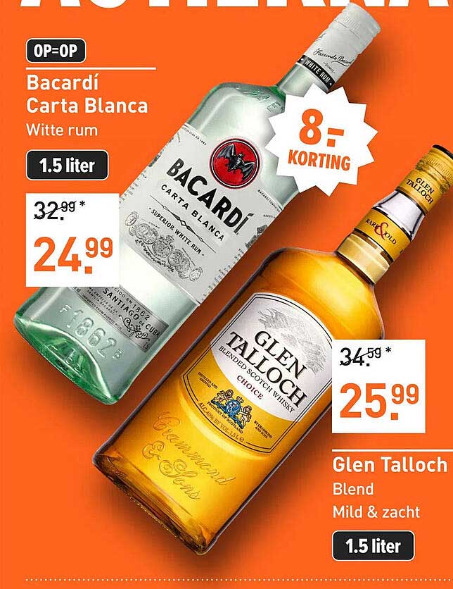 Bekijk de Bacardí Carta Blanca Witte Rum Glen Talloch Blend Mild & Zacht aanbieding bij Gall & Gall! Deze fantastische aanbieding is nu beschikbaar in de nieuwste Gall & Gall folder. Profiteer van deze kans en bespaar flink op je aankoop.