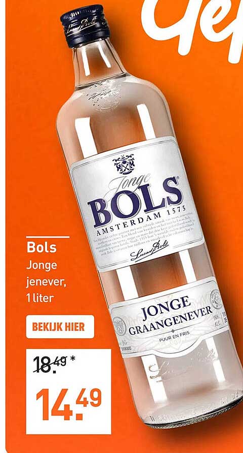Bekijk nu de Bols Jonge jenever aanbieding in de Gall & Gall folder. Deze aanbieding is geldig van 13-01-2025 tot en met 19-01-2025.