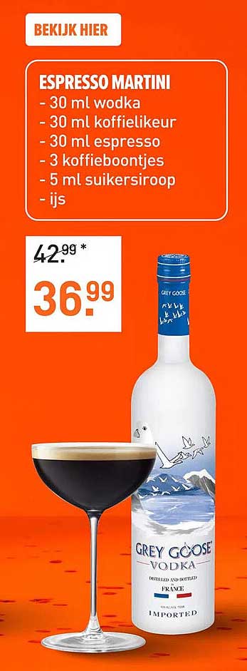 Ontdek de geweldige Esproso Martini aanbieding in de nieuwste Gall & Gall folder. Naast deze aanbieding vind je nog veel meer aantrekkelijke kortingen. Je kunt de Esproso Martini eenvoudig online bestellen via de Gall & Gall website of kopen in een winkel bij jou in de buurt.