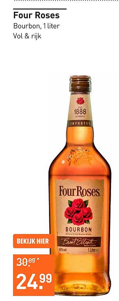 Bekijk de Four Roses aanbieding bij Gall & Gall! Deze fantastische aanbieding is nu beschikbaar in de nieuwste Gall & Gall folder. Profiteer van deze kans en bespaar flink op je aankoop.