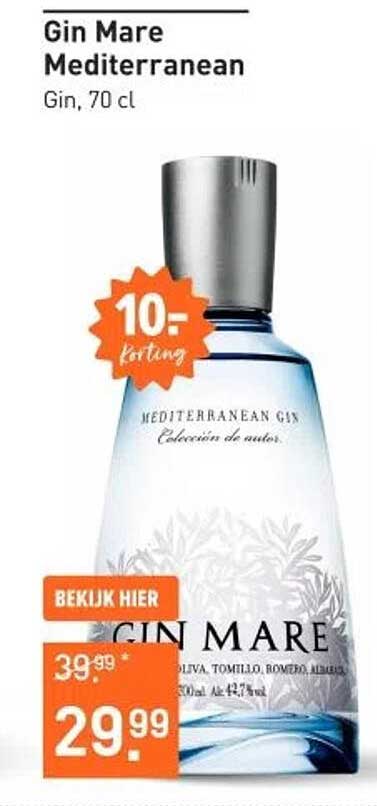 Ben je een liefhebber van gin? Dan is deze aanbieding echt iets voor jou! Gin Mare Mediterranean, een bijzondere gin die zich onderscheidt door zijn unieke smaak en aroma's. Met een korting van 10 euro is dit het perfecte moment om deze heerlijke gin aan te schaffen. Deze aanbieding is geldig van 10 juni tot en met 15 juni 2025, dus mis het niet!