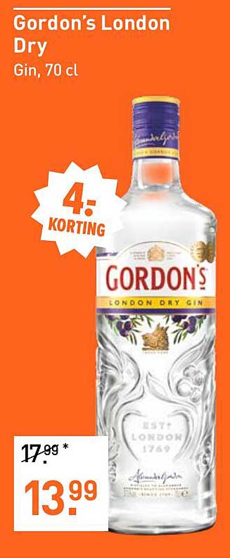 Bekijk nu de Gordon's London Dry Gin aanbieding in de Gall & Gall folder. Deze aanbieding is geldig van 30-09-2024 tot en met 06-10-2024.