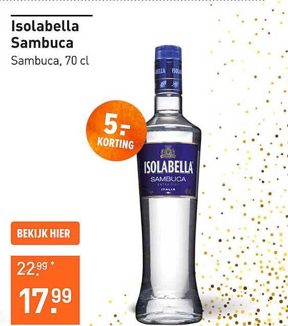 Bekijk de Isolabella Sambuca aanbieding bij Gall & Gall! Deze fantastische aanbieding is nu beschikbaar in de nieuwste Gall & Gall folder. Profiteer van deze kans en bespaar flink op je aankoop.