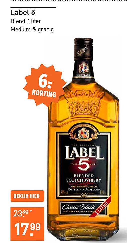 Ontdek de geweldige Label 5 aanbieding in de nieuwste Gall & Gall folder. Naast deze aanbieding vind je nog veel meer aantrekkelijke kortingen. Je kunt de Label 5 eenvoudig online bestellen via de Gall & Gall website of kopen in een winkel bij jou in de buurt.