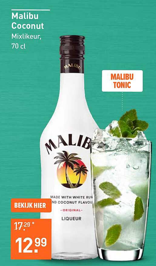 Ontdek de geweldige Malibu Coconut aanbieding in de nieuwste Gall & Gall folder. Naast deze aanbieding vind je nog veel meer aantrekkelijke kortingen. Je kunt de Malibu Coconut eenvoudig online bestellen via de Gall & Gall website of kopen in een winkel bij jou in de buurt.