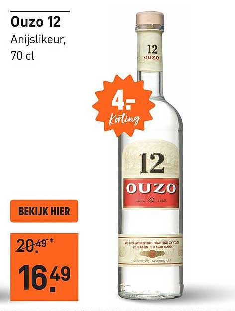 De reguliere prijs van Ouzo 12 is €20,49, maar nu kun je profiteren van een spectaculaire korting van €4,- waardoor de prijs daalt naar slechts €16,49. Dit is een uitstekende kans om deze kwaliteitslikeur in huis te halen voor een prijs die je niet wilt missen!