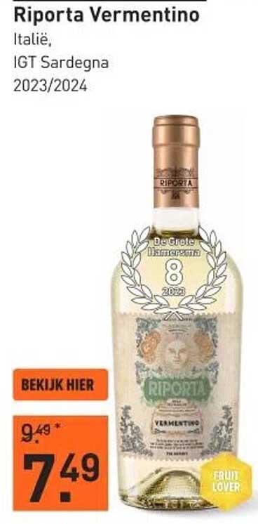 Bekijk nu de Riporta Vermentino aanbieding in de Gall & Gall folder. Deze aanbieding is geldig van 22-09-2025 tot en met 28-09-2025.