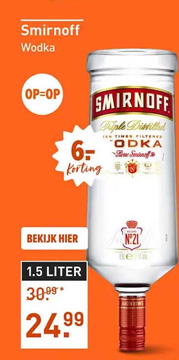 Bekijk nu de Smirnoff Wodka aanbieding in de Gall & Gall folder. Deze aanbieding is geldig van 20-10-2025 tot en met 02-11-2025.