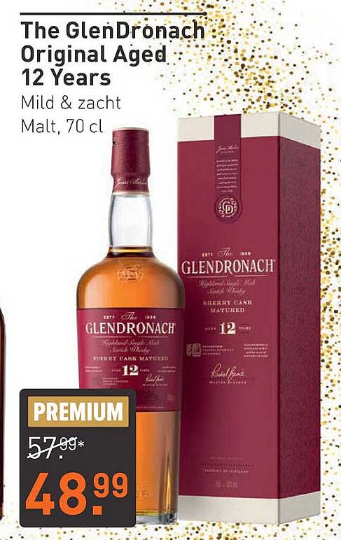 Ontdek de geweldige The Glendronach Original Aged 12 Years aanbieding in de nieuwste Gall & Gall folder. Naast deze aanbieding vind je nog veel meer aantrekkelijke kortingen. Je kunt de The Glendronach Original Aged 12 Years eenvoudig online bestellen via de Gall & Gall website of kopen in een winkel bij jou in de buurt.