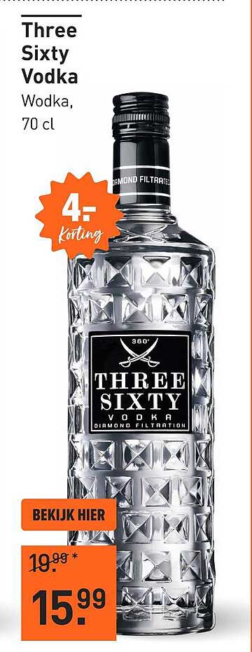 Ben je op zoek naar een premium vodka die niet alleen heerlijk smaakt, maar ook nog eens een prachtig ontwerp heeft? Dan is de Three Sixty Vodka echt iets voor jou! Met een uitzonderlijke prijsverlaging van 4 euro, van 19,99 euro nu voor slechts 15,99 euro, is dit het ideale moment om je favoriete drankje in te slaan. Perfect voor feesten, gezellige avonden met vrienden of gewoon om jezelf te verwennen.