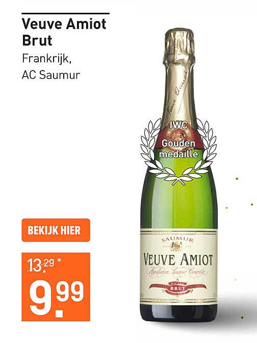 Bekijk de Veuve Amiot Brut aanbieding bij Gall & Gall! Deze fantastische aanbieding is nu beschikbaar in de nieuwste Gall & Gall folder. Profiteer van deze kans en bespaar flink op je aankoop.