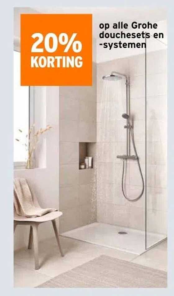 Bekijk nu de 20% KORTING op alle Grohe douchesets en -systemen aanbieding in de GAMMA folder. Deze aanbieding is geldig van 24-10-2025 tot en met 26-10-2025.