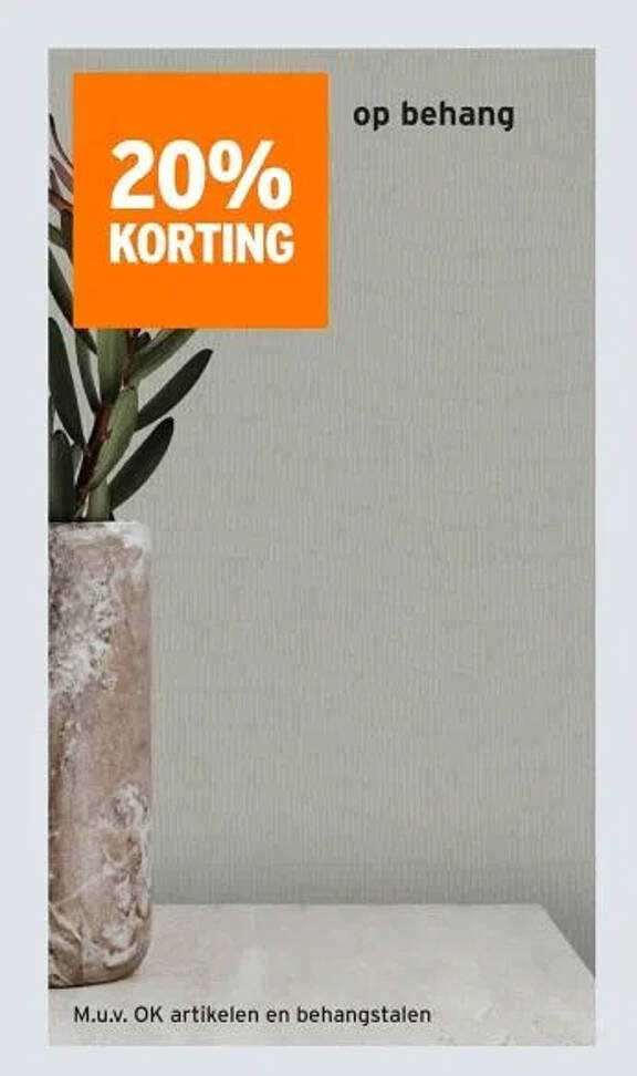 Bekijk de 20% Korting Op Behang aanbieding bij GAMMA! Deze fantastische aanbieding is nu beschikbaar in de nieuwste GAMMA folder. Profiteer van deze kans en bespaar flink op je aankoop.