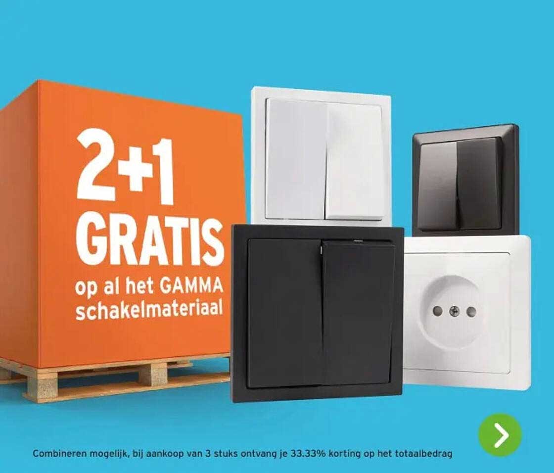 Bekijk nu de 2+1 GRATIS op al het GAMMA schakelmateriaal aanbieding in de GAMMA folder. Deze aanbieding is geldig van 12-09-2025 tot en met 14-09-2025.