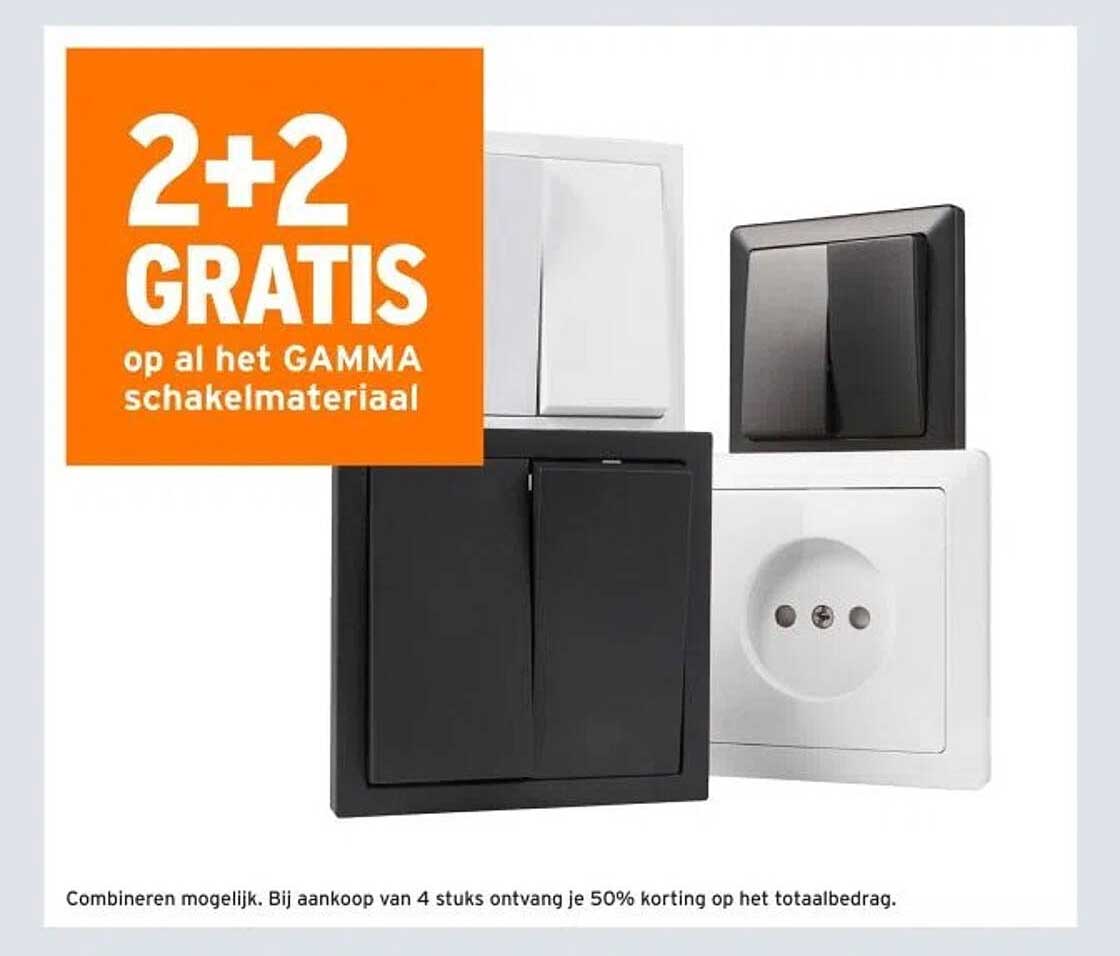 Bekijk nu de 2+2 GRATIS op al het GAMMA schakelmateriaal aanbieding in de GAMMA folder. Deze aanbieding is geldig van 06-06-2025 tot en met 08-06-2025.