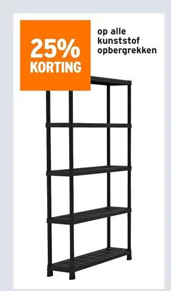 Bekijk nu de 25% korting op alle kunststof opbergrekken aanbieding in de GAMMA folder. Deze aanbieding is geldig van 28-03-2025 tot en met 30-03-2025.