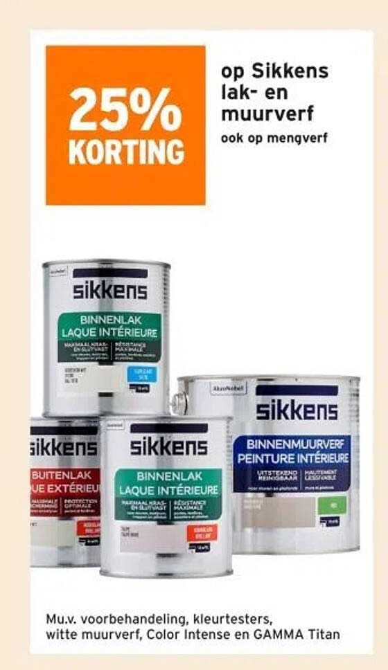 Ben je bezig met een verfklus in huis of wil je gewoon een nieuwe look geven aan je muren? Dan is dit het perfecte moment! Op deze pagina vind je een fantastische aanbieding van GAMMA: maar liefst 25% korting op geselecteerde Sikkens lak- en muurverf. Dit is een uitgelezen kans om kwaliteitsverf in huis te halen voor een aantrekkelijke prijs.