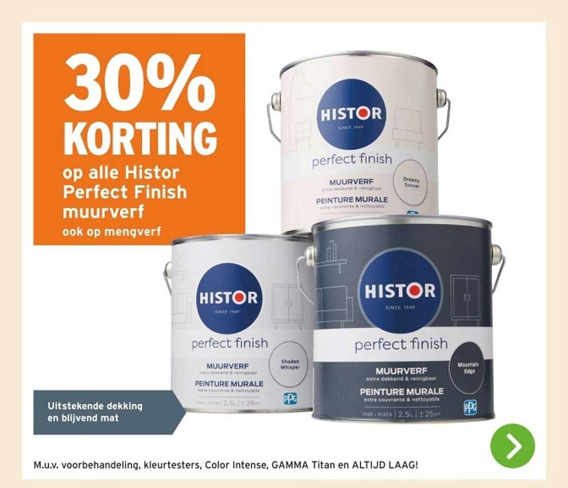 30% Korting Op Alle Histor Perfect Finish Muurverf aanbieding bij GAMMA
