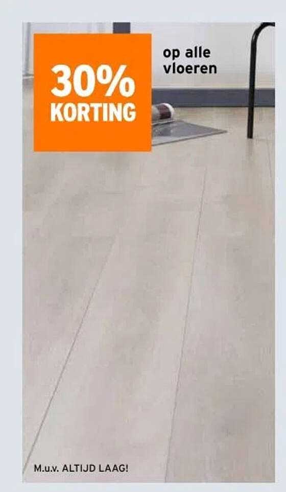 Bekijk nu de 30% KORTING op alle vloeren aanbieding in de GAMMA folder. Deze aanbieding is geldig van 24-10-2025 tot en met 26-10-2025.