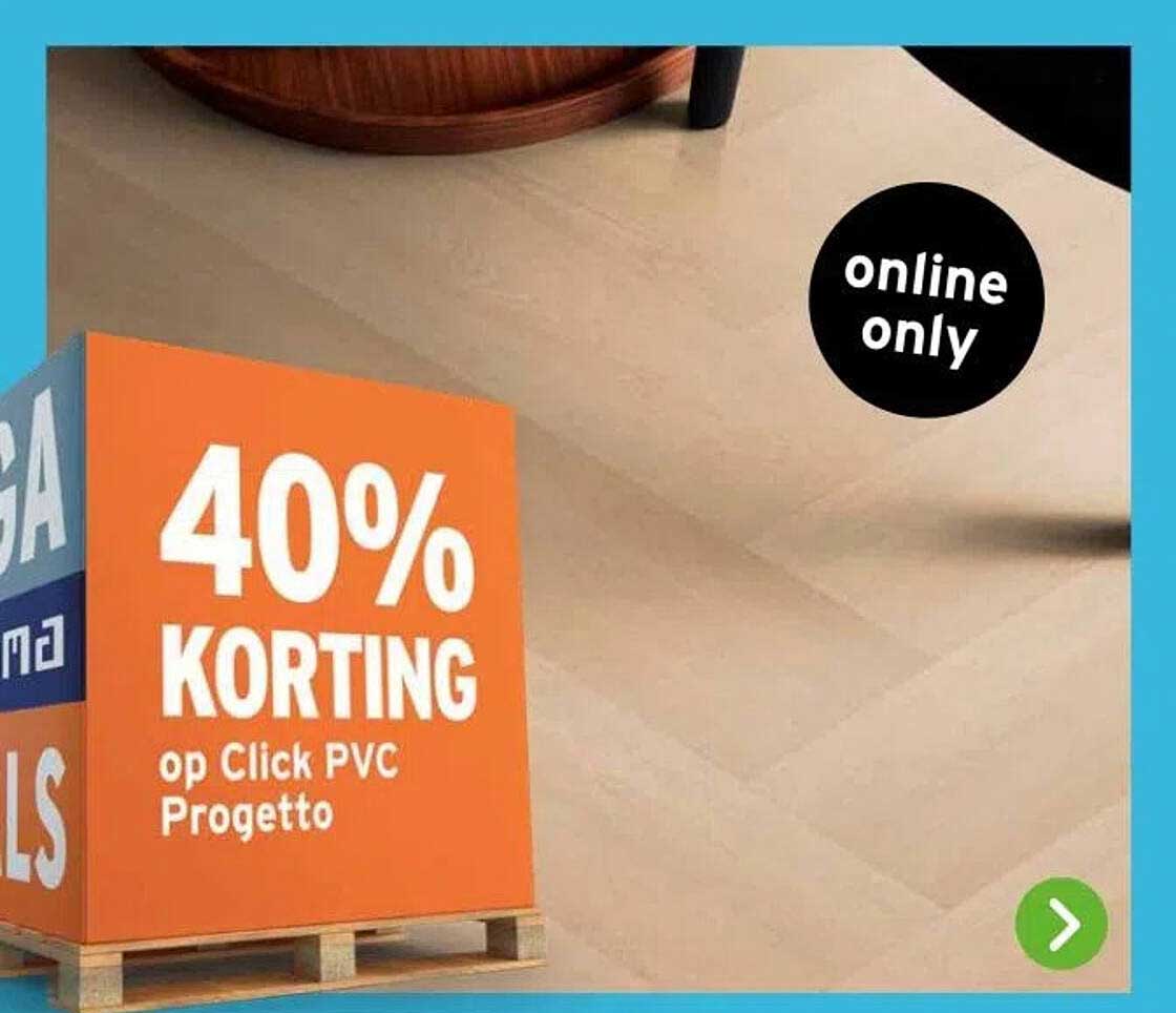 Bekijk nu de 40% KORTING op Click PVC Progetto aanbieding in de GAMMA folder. Deze aanbieding is geldig van 19-09-2025 tot en met 21-09-2025.
