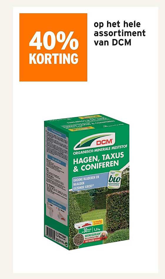 Bekijk nu de 40% KORTING op het hele assortiment van DCM aanbieding in de GAMMA folder. Deze aanbieding is geldig van 09-05-2025 tot en met 11-05-2025.
