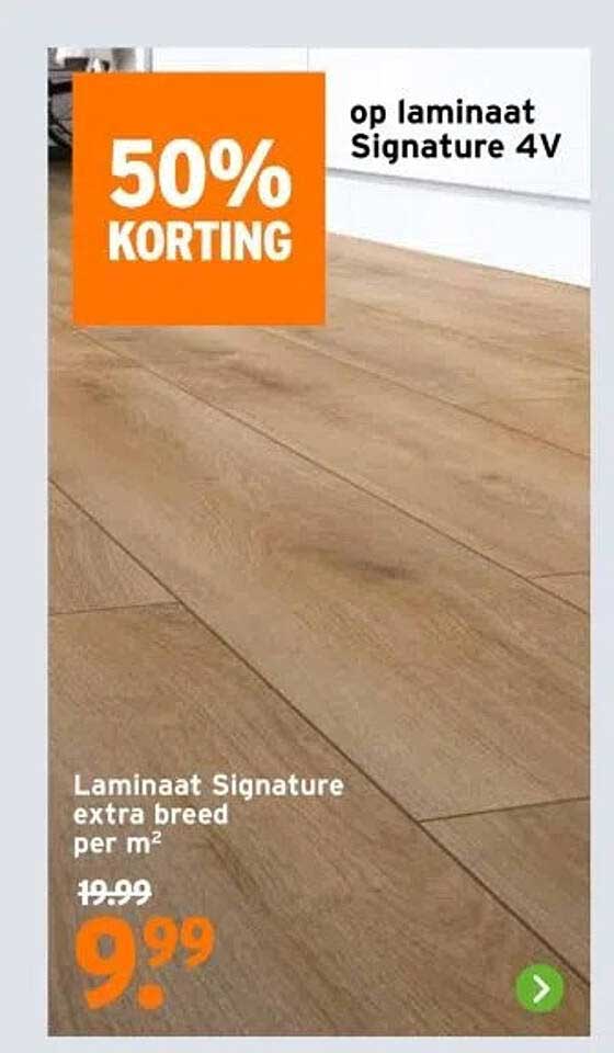 Ben je op zoek naar een geweldige upgrade voor je vloer? Dan moet je deze aanbieding zeker bekijken! Tijdens de actie bij GAMMA krijg je maar liefst 50% korting op het prachtige laminaat Signature 4V. Dit extra brede laminaat geeft niet alleen een luxe uitstraling aan je interieur, maar is ook duurzaam en eenvoudig te onderhouden. Een perfecte keuze voor iedereen die kwaliteit en stijl wil combineren.