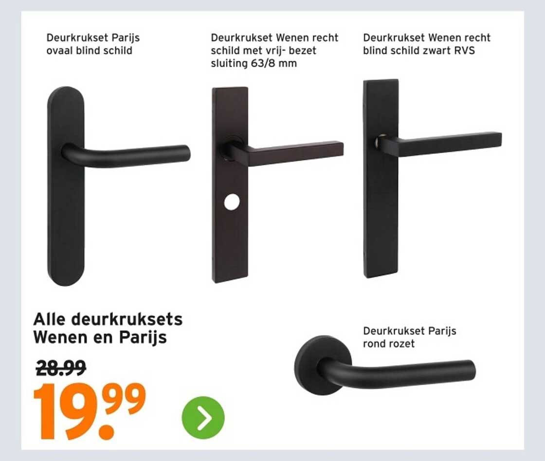 Ben je op zoek naar een stijlvolle en functionele oplossing voor je deuren? Deze aanbieding van GAMMA heeft de perfecte oplossing voor jou! De deurkruiksets Wenen en Parijs zijn niet alleen functioneel, maar geven ook een moderne uitstraling aan je interieur. Of je nu een verbouwing plant of simpelweg een paar deuren een upgrade wilt geven, deze deurkruiksets zijn een uitstekende keuze. Met een scherpe prijs is dit het ideale moment om je aankopen te doen!