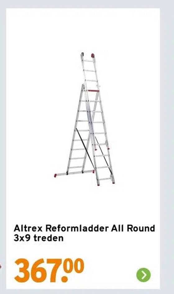 Heb je een klussenproject in huis of in de tuin? Dan is deze Altrex Reformladder All Round met 3x9 treden een onmisbare aanvulling op jouw gereedschap! Met een hoogte die je helpt om gemakkelijk bij die moeilijk bereikbare plekken te komen, is het een echte must-have. Deze ladder biedt niet alleen functionaliteit, maar ook veiligheid en stabiliteit door zijn degelijke constructie.