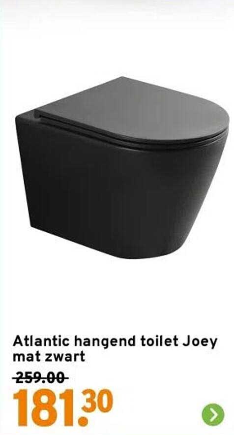 Bekijk nu de Atlantic hangend toilet Joey mat zwart aanbieding in de GAMMA folder. Deze aanbieding is geldig van 19-09-2025 tot en met 21-09-2025.