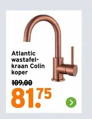 Ben je op zoek naar een stijlvolle en functionele wastafelkraan? Dan is de Atlantic wastafelkraan Colin in koper een geweldige keuze! Deze kraan biedt niet alleen een moderne uitstraling aan je badkamer of keuken, maar zorgt ook voor een uitstekende functionaliteit. Met een aanbieding als deze, geldig van 24 oktober tot en met 26 oktober 2025, is dit het perfecte moment om je huis een upgrade te geven.