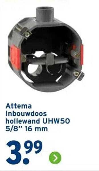 Bekijk de Attema Inbouwdoos Hollewand Uhw50 aanbieding bij GAMMA! Deze fantastische aanbieding is nu beschikbaar in de nieuwste GAMMA folder. Profiteer van deze kans en bespaar flink op je aankoop.