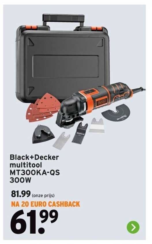 Bekijk de Black+Decker Multitool Mt300Ka-Qs 300W aanbieding bij GAMMA! Deze fantastische aanbieding is nu beschikbaar in de nieuwste GAMMA folder. Profiteer van deze kans en bespaar flink op je aankoop.