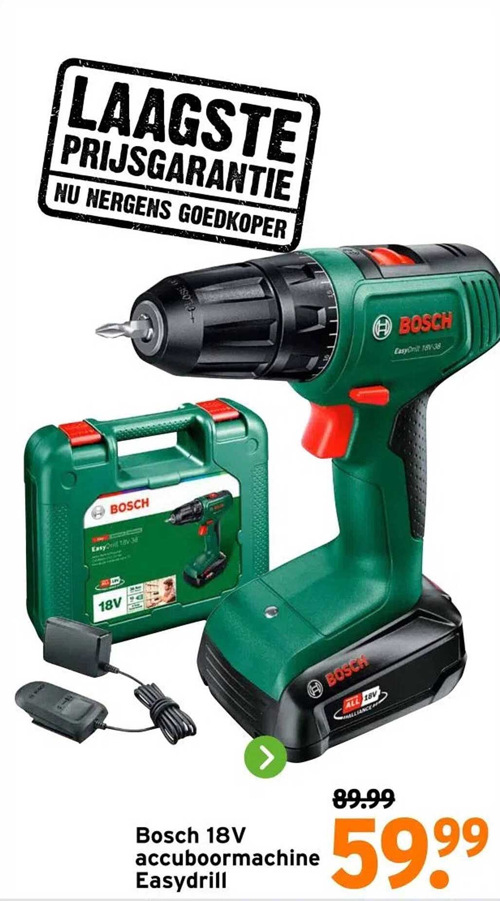 Ben je op zoek naar een krachtige en betrouwbare accuboormachine? Zoek niet verder! Deze Bosch 18V accuboormachine Easydrill is de perfecte oplossing voor al je klussen, zowel thuis als op de bouw. Tijdens de aanbieding zijn de kosten verlaagd van €89,99 naar slechts €59,99. Dit is een kans die je niet wilt missen!