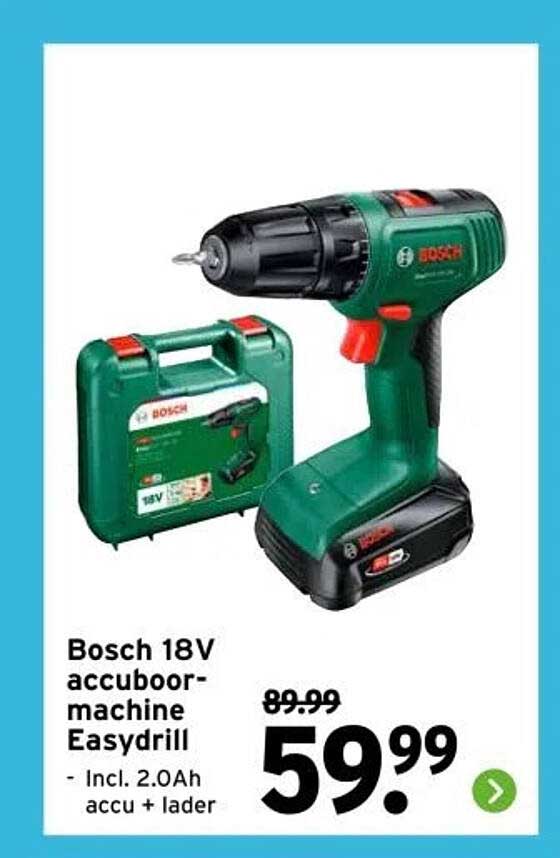 De originele prijs van de Bosch 18V accuboormachine Easydrill is €89,99, maar nu kun je hem kopen voor slechts €59,99! Dit betekent een korting van maar liefst €30 op de reguliere prijs. Dit maakt deze aanbieding niet alleen aantrekkelijk, maar ook een slimme investering voor de toekomst.