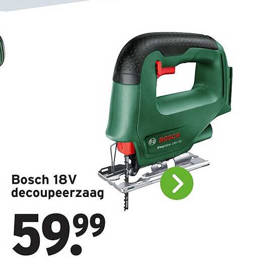 Bekijk deze geweldige aanbieding van de Bosch 18V decoupeerzaag. Of je nu een ervaren klussen-vriend bent of gewoon wat eenvoudige projecten in huis wilt aanpakken, deze decoupeerzaag is de perfecte metgezel. Het is een veelzijdig en krachtig apparaat dat je helpt om nauwkeurige sneden te maken in verschillende materialen. Deze aanbieding is geldig van 2025-08-18 tot en met 2025-08-24, dus mis het niet!
