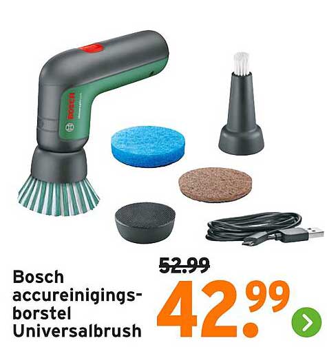 Ben je op zoek naar een handige en efficiënte manier om je spullen schoon te maken? Dan is de Bosch accureinigingsborstel Universalbrush een uitstekende keuze! Deze veelzijdige reiniger maakt het eenvoudig om verschillende oppervlakken grondig te reinigen. Met de huidige aanbieding is dit product nu aantrekkelijk geprijsd, waardoor je niet alleen tijd maar ook geld bespaart.