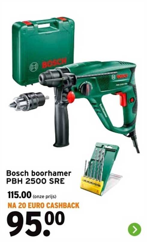 Bekijk de Bosch Boorhamer Pbh 2500 Sre aanbieding bij GAMMA! Deze fantastische aanbieding is nu beschikbaar in de nieuwste GAMMA folder. Profiteer van deze kans en bespaar flink op je aankoop.