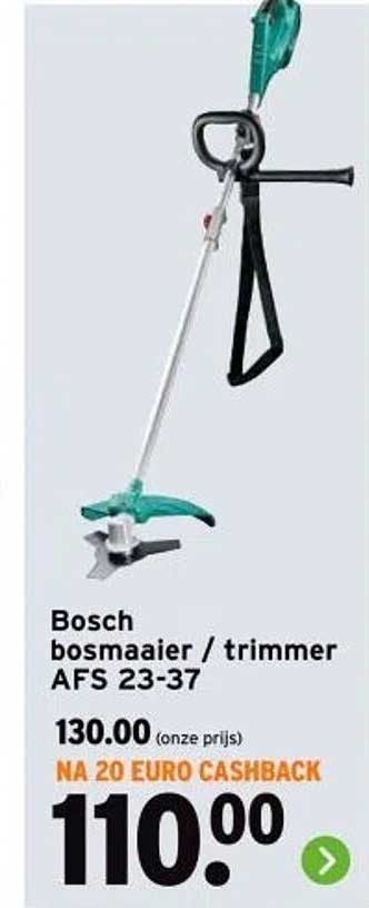 Wil je direct op de hoogte zijn zodra de Bosch Bosmaaier / Trimmer Afs 23-37 in de aanbieding is? Meld je aan voor onze aanbiedingen-alert. Zo krijg je een melding zodra het product tegen een voordelige prijs beschikbaar is.