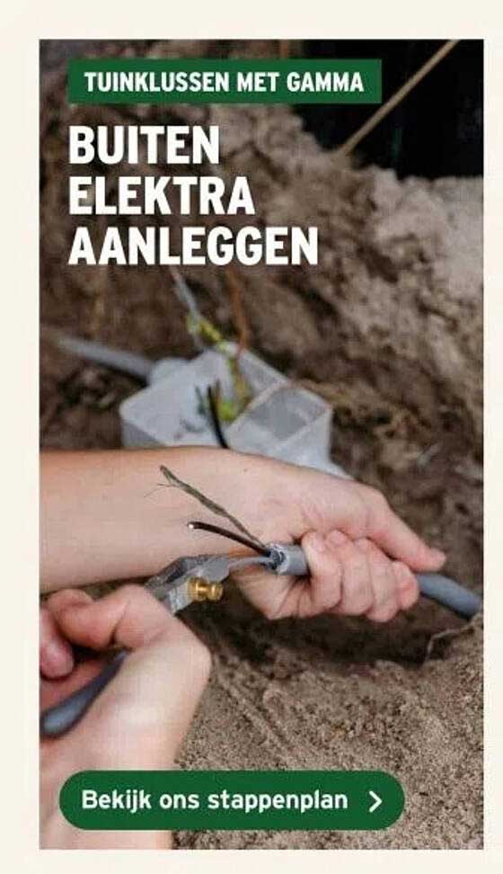Bekijk nu de BUITEN ELEKTRA AANLEGGEN aanbieding in de GAMMA folder. Deze aanbieding is geldig van 19-05-2025 tot en met 25-05-2025.