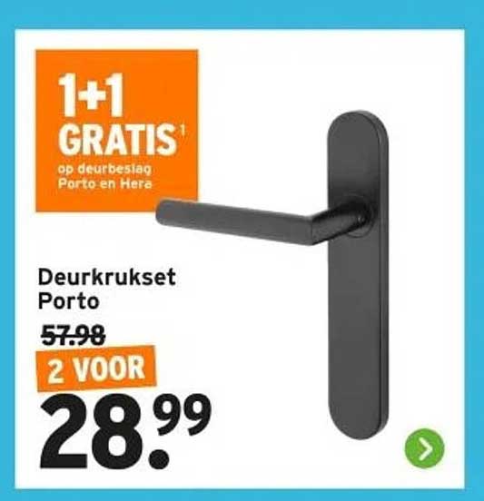 Bekijk nu de Deurkrukset Porto aanbieding in de GAMMA folder. Deze aanbieding is geldig van 18-06-2025 tot en met 22-06-2025.