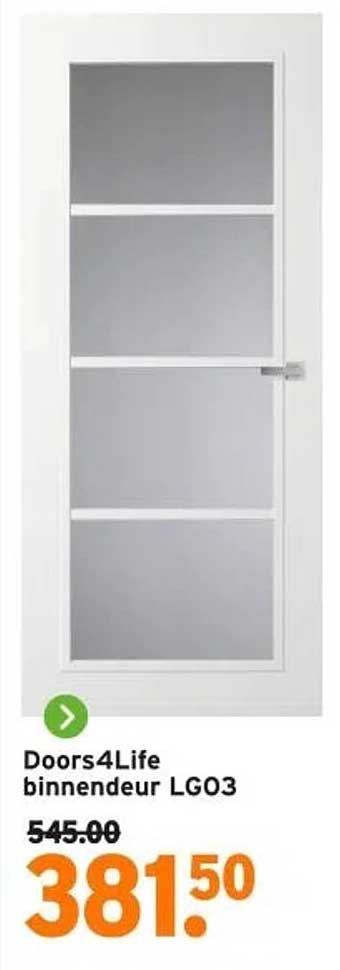 De originele prijs van de Doors4Life binnendeur LGO3 is €545, maar met deze aanbieding betaal je slechts €381,50! Dit is een korting van wel 30%, wat het een uitstekende kans maakt om je interieur een upgrade te geven zonder je budget te overschrijden. Het is niet alleen een investering in kwaliteit, maar ook een slimme financiële keuze.