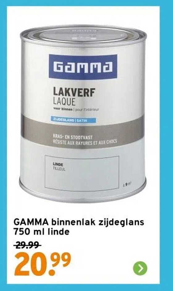 Ontdek de geweldige Gamma Binnenlak Zijdeglans Linde aanbieding in de nieuwste GAMMA folder. Naast deze aanbieding vind je nog veel meer aantrekkelijke kortingen. Je kunt de Gamma Binnenlak Zijdeglans Linde eenvoudig online bestellen via de GAMMA website of kopen in een winkel bij jou in de buurt.
