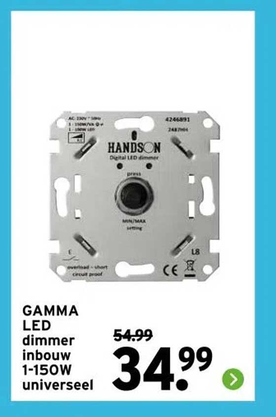 Ben je op zoek naar de perfecte oplossing om je verlichting aan te passen aan jouw stemming of gelegenheid? De GAMMA LED dimmer is precies wat je nodig hebt! Met deze dimmer kun je de helderheid van je LED-verlichting eenvoudig regelen, zodat je altijd de juiste sfeer creëert in je huis. Bovendien is deze aanbieding tijdelijk, dus mis het niet!